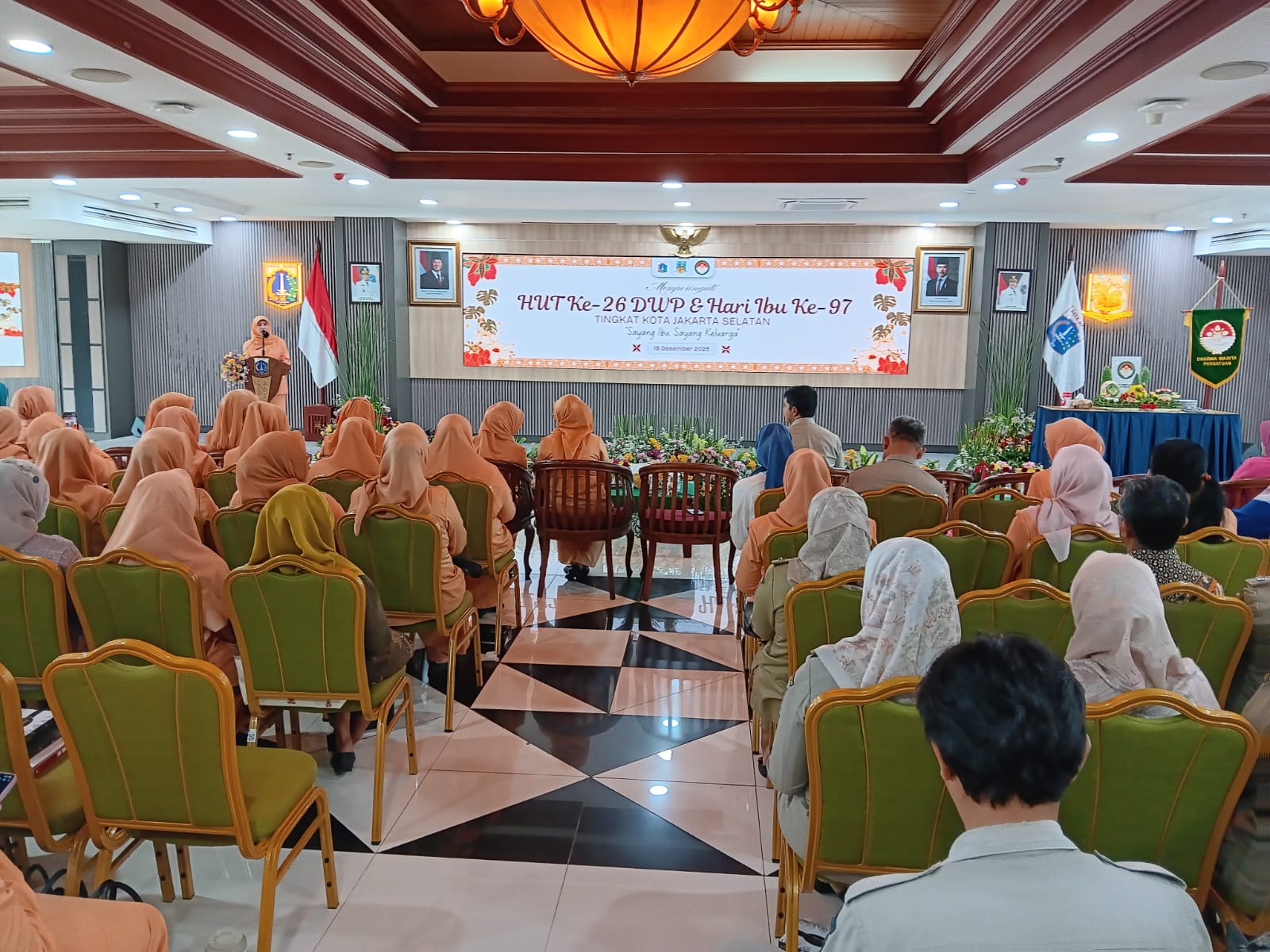 JAKARTA – SATU NASIONA.COM – Ribuan Aparatur Sipil Negara (ASN) di lingkungan Pemerintah Kota Administrasi Jakarta Selatan memperingati Hari Ulang Tahun (HUT) Dharma Wanita Persatuan (DWP) ke-26 sekaligus Hari Ibu ke-97. Kegiatan digelar di Ruang Gelatik Utama, Lantai 3, Blok A, Kantor Wali Kota Jakarta Selatan, Selasa (16/12).